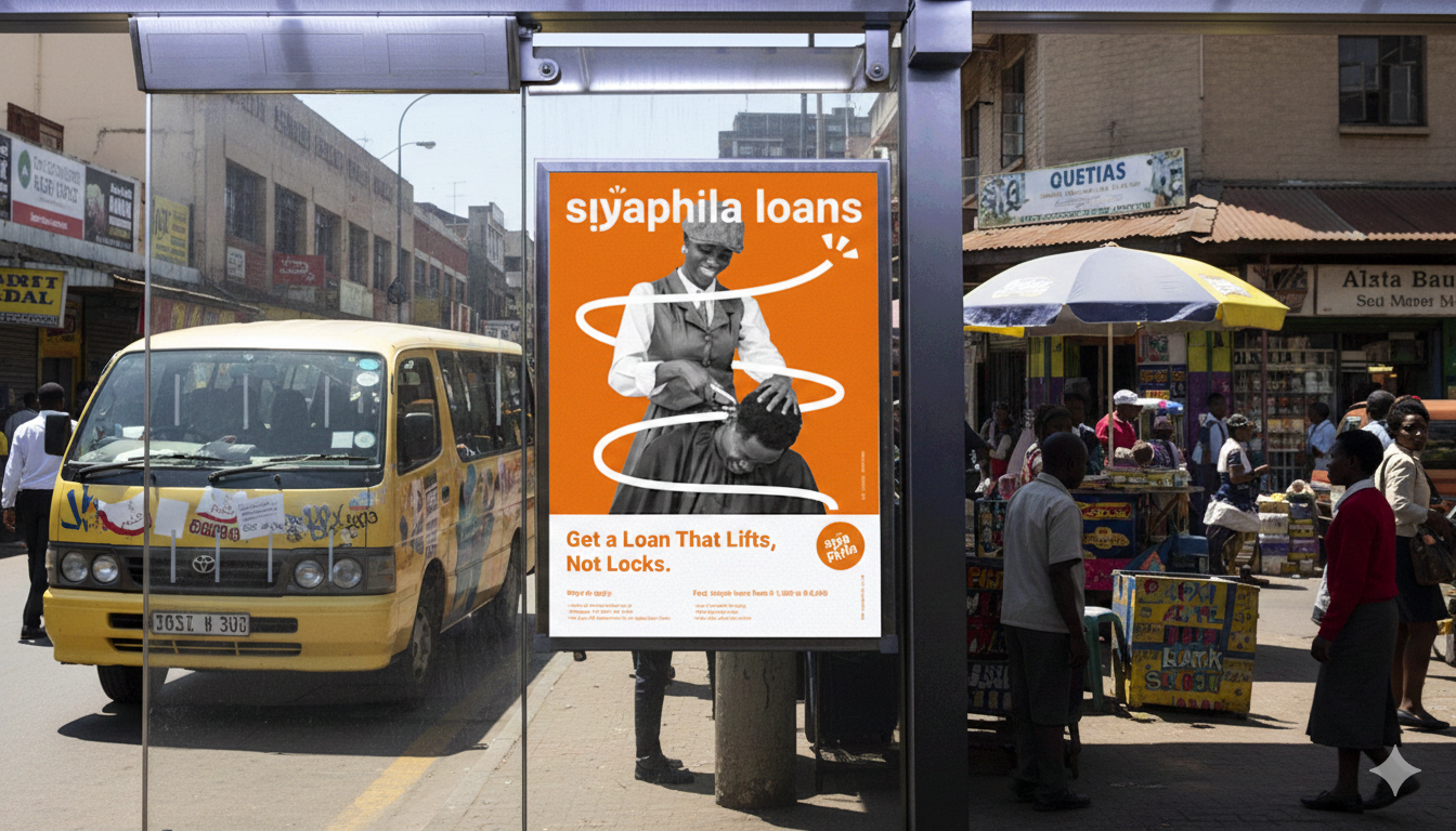 The tagline, “Get a Loan That Lifts, Not Locks” captures Siyaphila’s commitment to offering financial support that helps people move forward with confidence. We crafted a wordmark logo that symbolizes a "small loan", uplifting people toward a brighter future/tomorrow.
